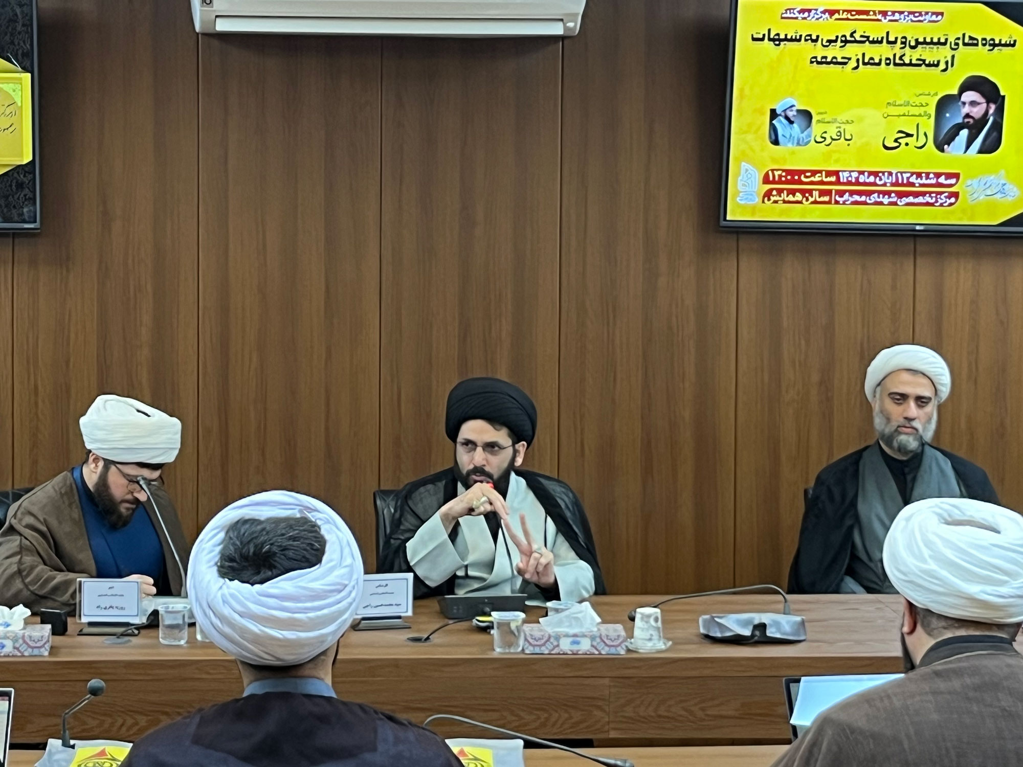 نشست علمی با موضوع شیوه های تبیین و پاسخگویی به شبهات از سخنگاه نماز جمعه باحضور حجت الاسلام والمسلمین راجی موسس و مدیر اندیشکده راهبردی سعداء و با حضور حجت الاسلام والمسلمین جلالی مدیر مرکز، معاونین و دانش پژوهان برگزار شد.